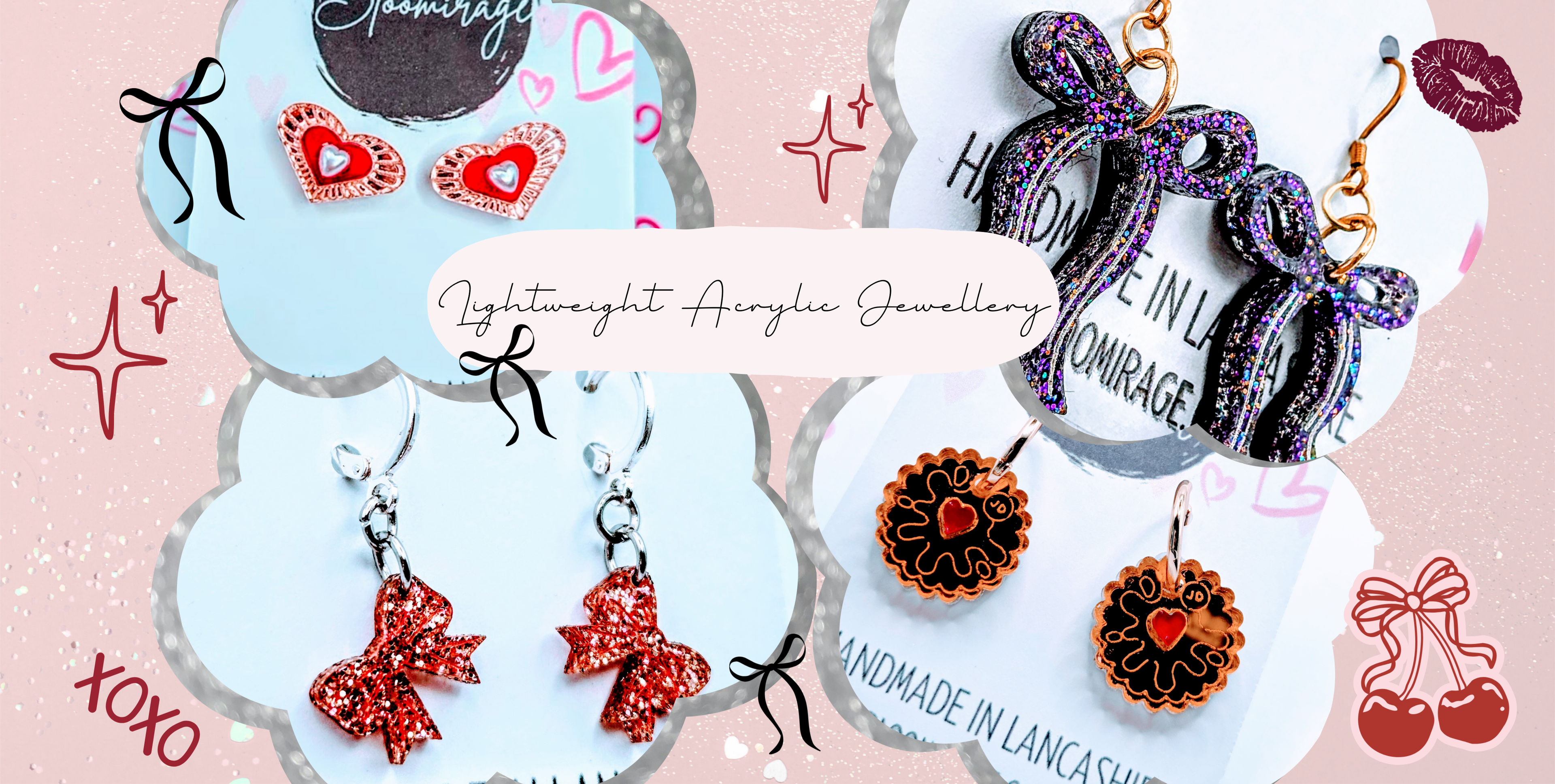 Jammy Buscuit Love Heart Earrings | Mirrored Acrylic | Valentines Day | Handmade Jewellery
