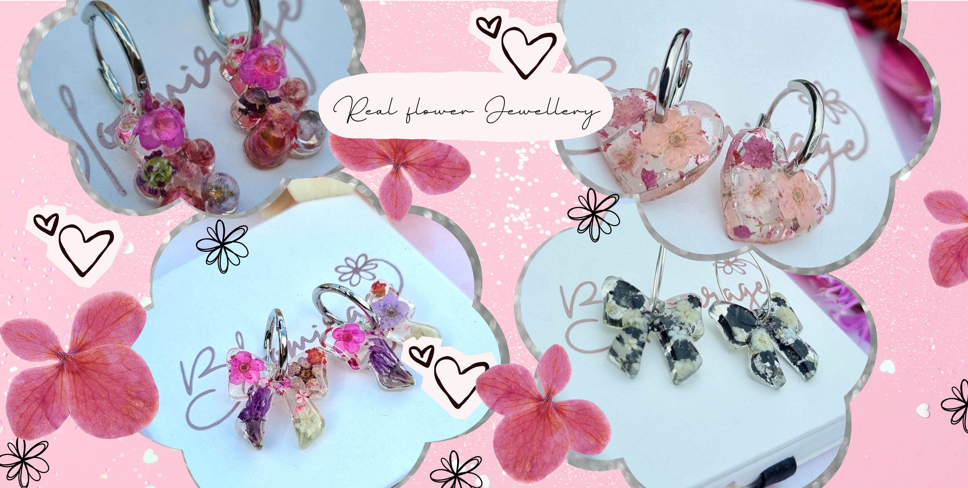 Pink Heart Hoop Earrings | Real Pressed Flower Botanical Jewelry | Meaningful Gift for her